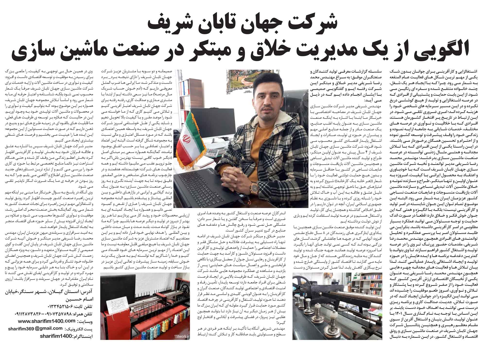 آخرین خبرها  جهان تابان شریف  الگویی از یک مدیریت خلاق و مبتکر در صنعت ماشین سازی